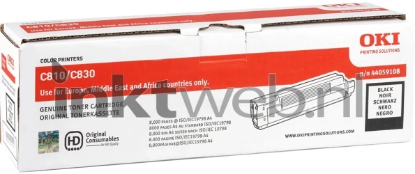 Originele Oki toner zwart, capaciteit: 8.000 pagina's.