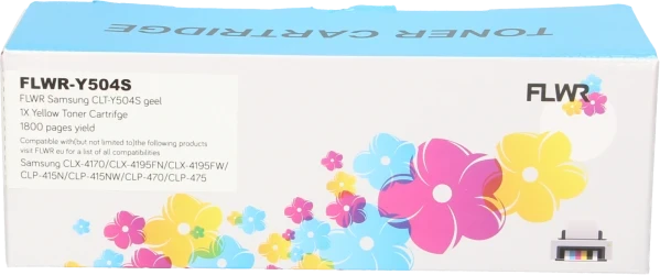 FLWR toner bestaande uit enkel nieuwe onderdelen. Deze vervangt de Samsung CLT-Y504S gele toner en heeft een capaciteit van 1800 pagina's.