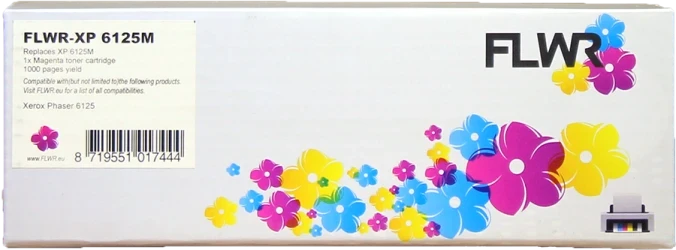 Topkwaliteit FLWR 6125 toner geschikt voor Xerox. Kleur magenta, capaciteit: 1000 pagina's bij 5% paginavulling.